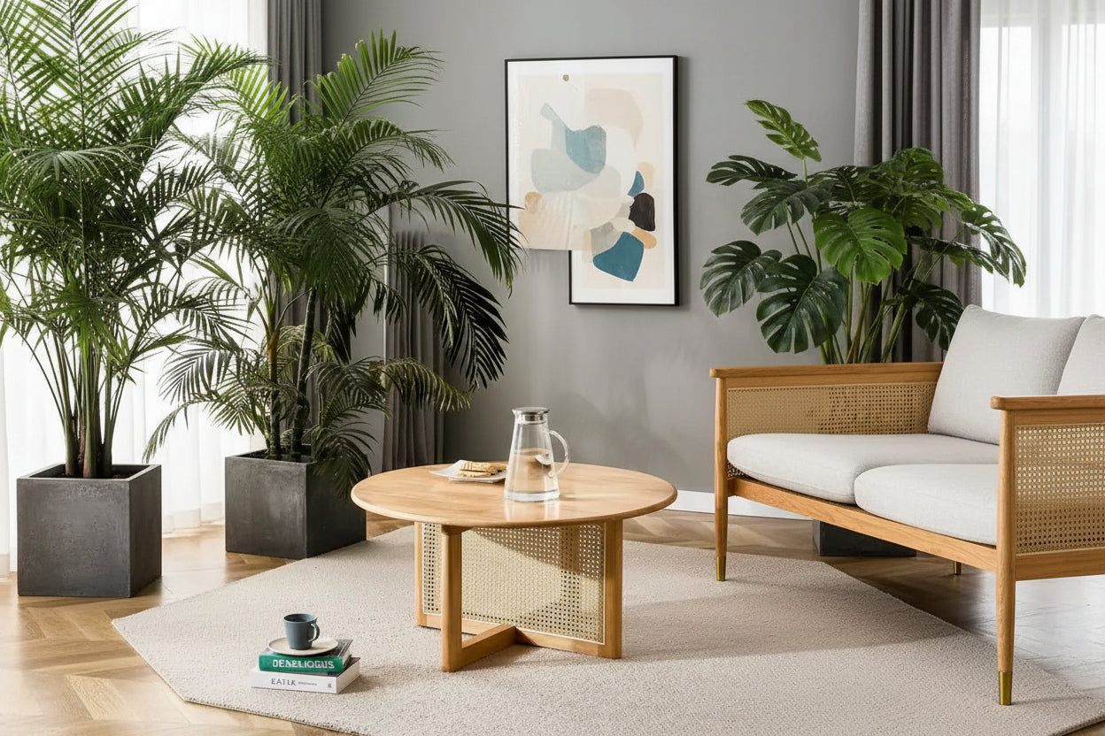 36.5 Modern Round Coffee Table with Wooden Top and Sleek Stainless-Steel Base for Living Room - 36.5L x 36.5W x 16.5H
